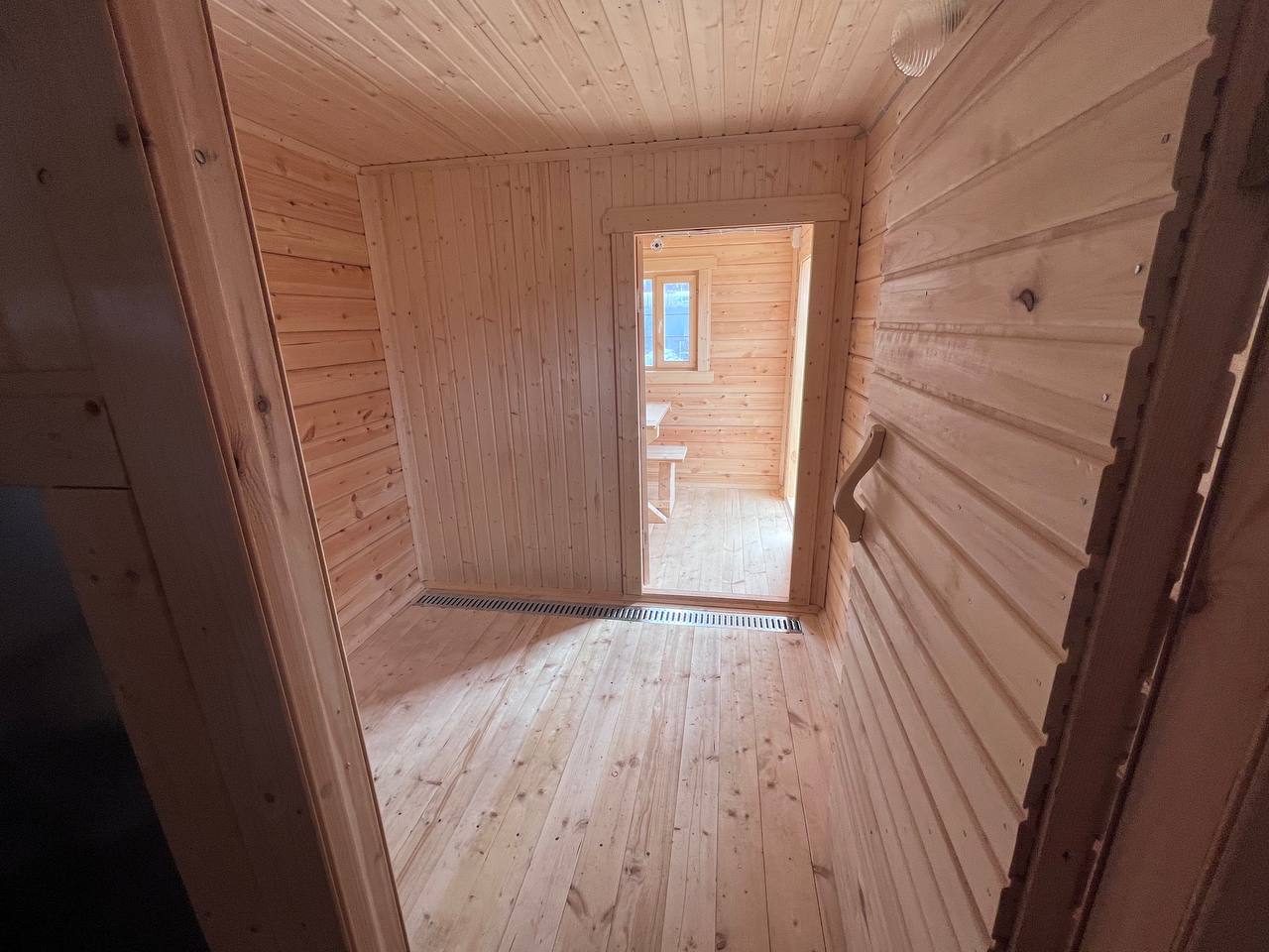 | Электрика | В раздевалке и моечном отделениях установлены стеклянные светильники, двойная розетка, а также двойной выключатель и автомат 16 А. В парном отделении - специальный светильник в металлической оправе с керамическим патроном. Вся проводка в кабель канале. |