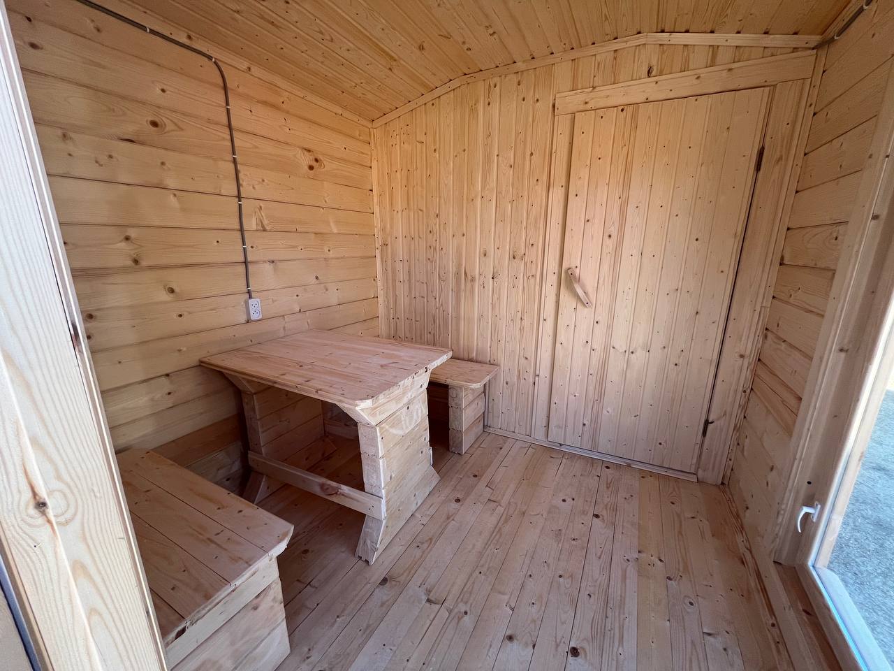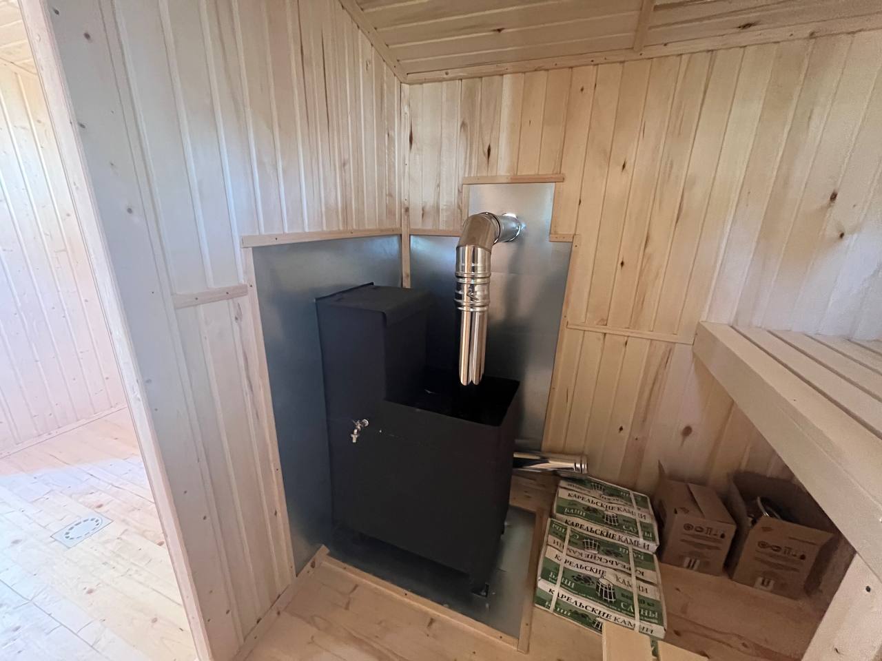| В парном отделении | Двухъярусные осиновые полки, банная металлическая печь Каменка-3 со встроенным баком под воду 55 л, выход трубы в стену. Установка печи с использованием не горючих материалов: Базальтовая вата и оцинкованные экраны. Две коробки камней 40 кг. |