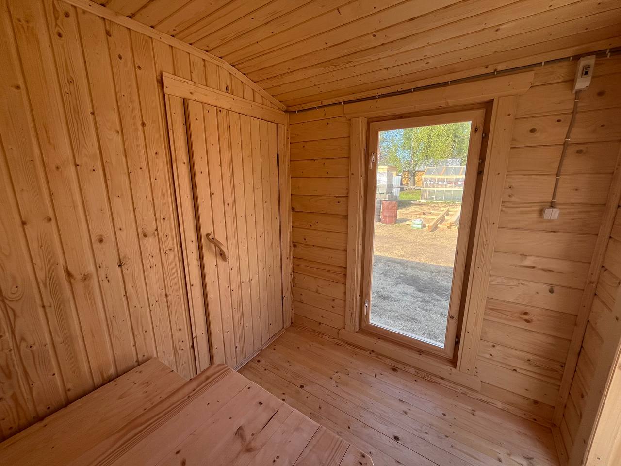 | Двери | Входная – ПВХ однокамерный стеклопакет. В парную – стеклянная дверь с жаропрочным стеклом. В помывочную – каркасная деревянная дверь. |