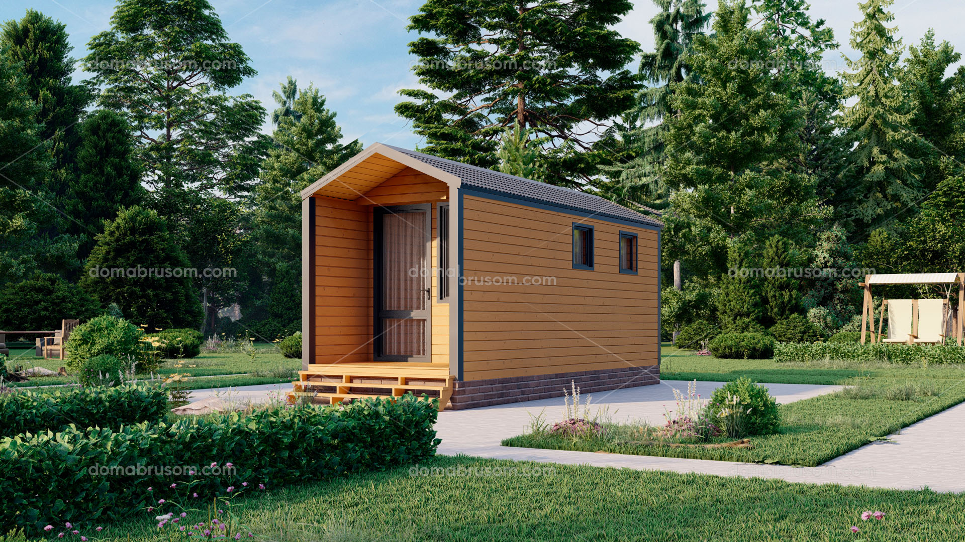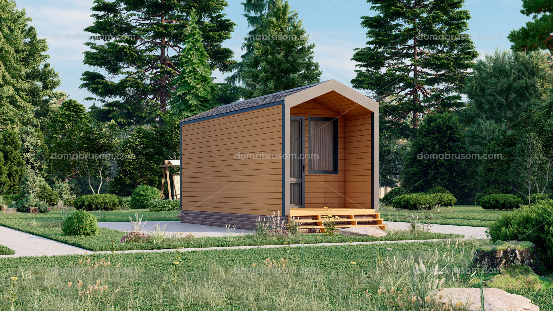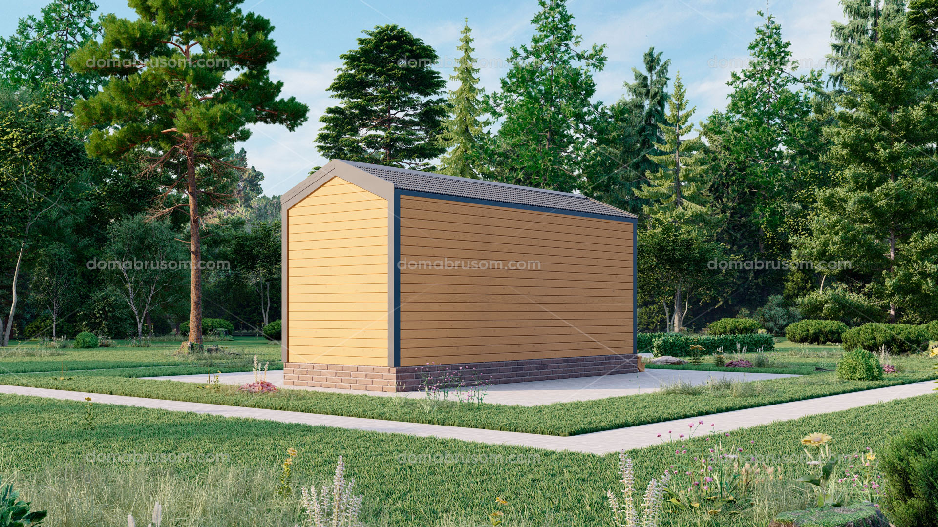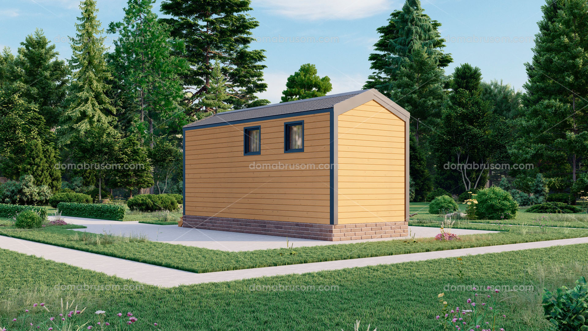Все наши бани можно построить как в каркасном, так и брусовом исполнении. Стоимость будет меняться от выбранной комплектации.