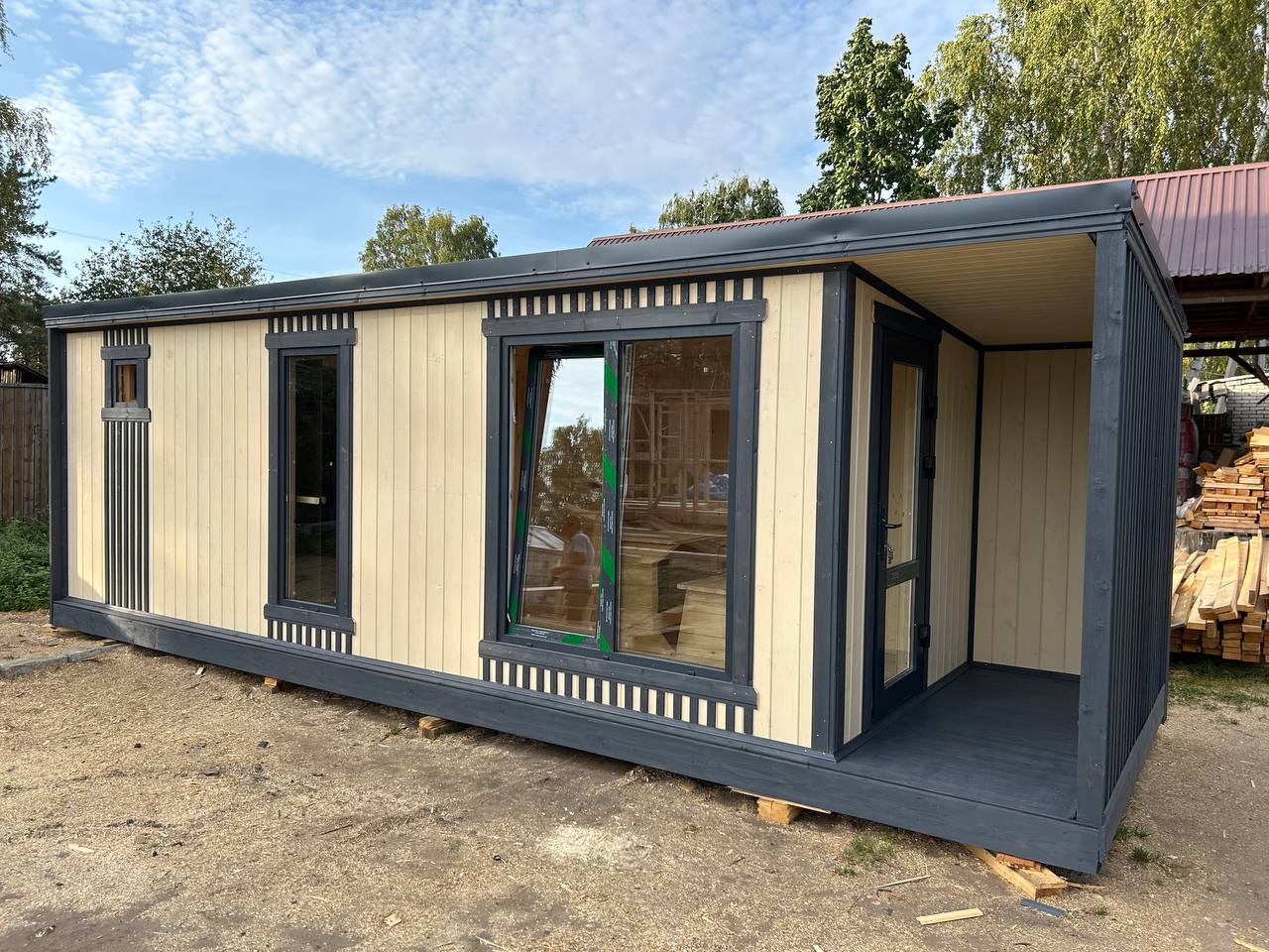Представляем проект «Лофт-4» — идеальный выбор для тех, кто хочет получить не просто баню, а полноценное место для отдыха на свежем воздухе. Эта модель сочетает современный дизайн, функциональность и уютную террасу.