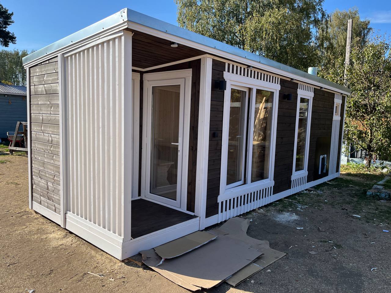 Баня «Лофт-44» отличается стильным дизайном, и вы можете покрасить её в любой цвет, чтобы она гармонично вписалась в ландшафт вашего участка. Мы предлагаем полную свободу выбора, чтобы вы могли создать свой уникальный стиль.