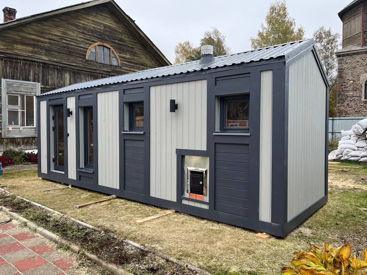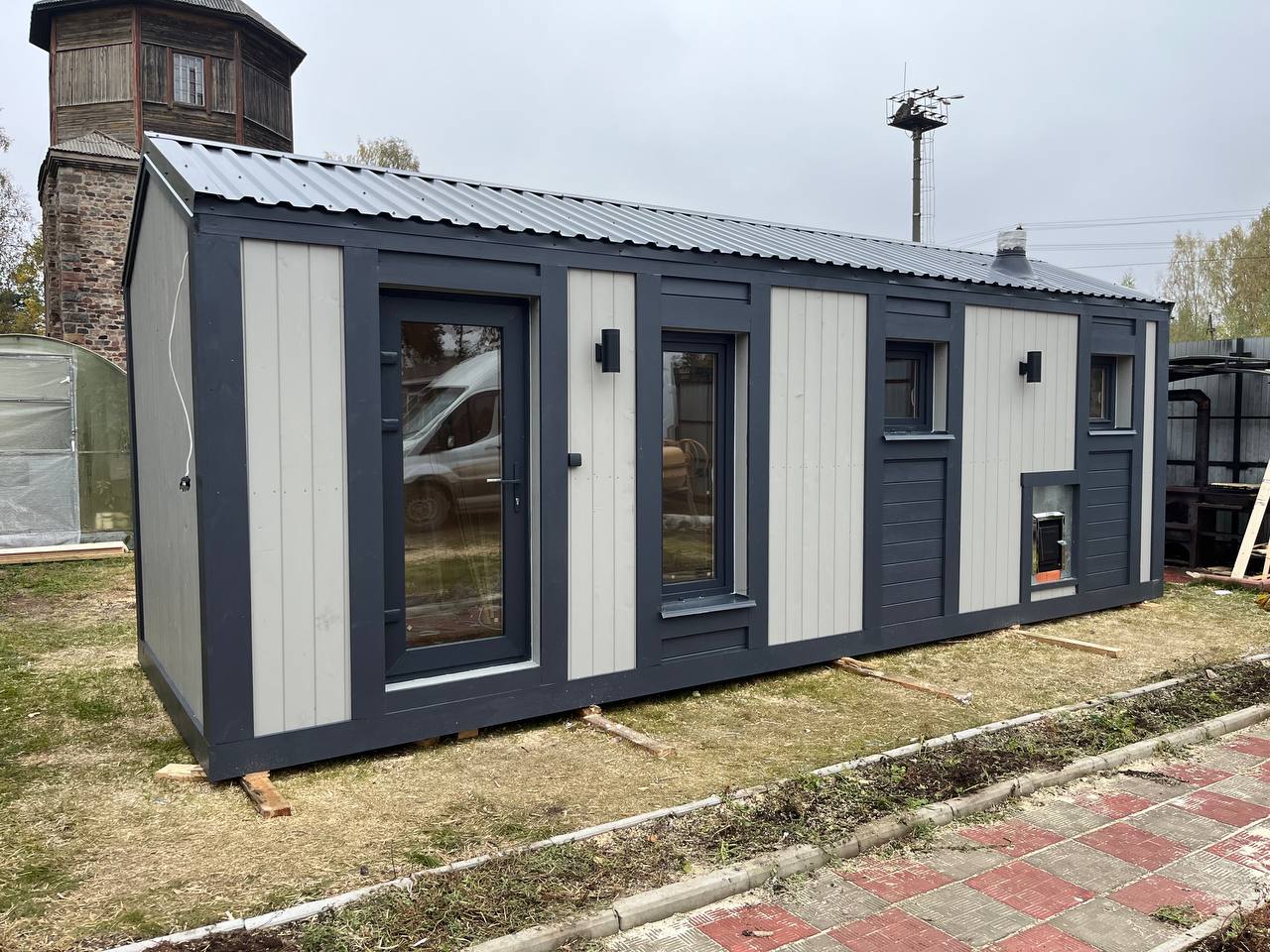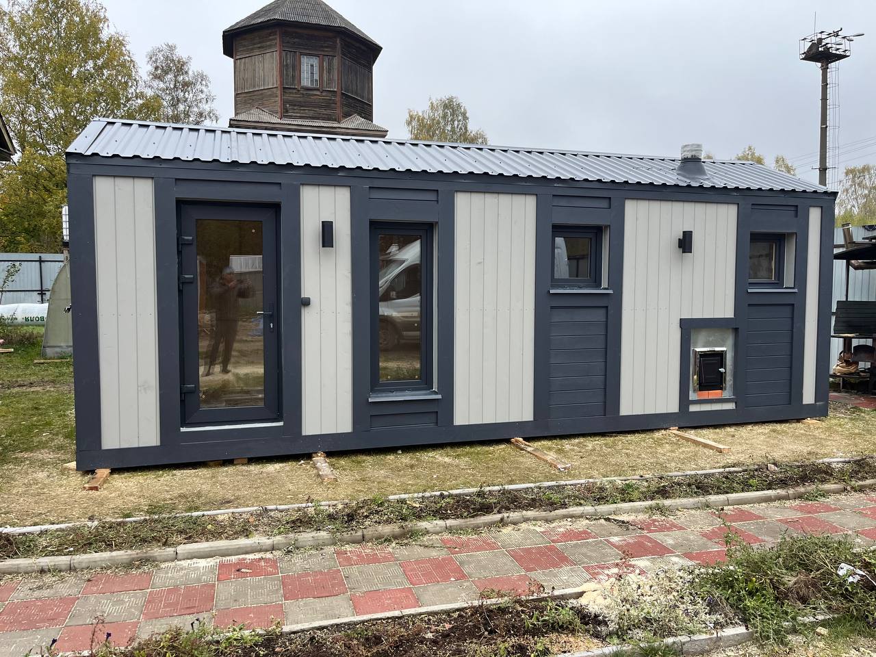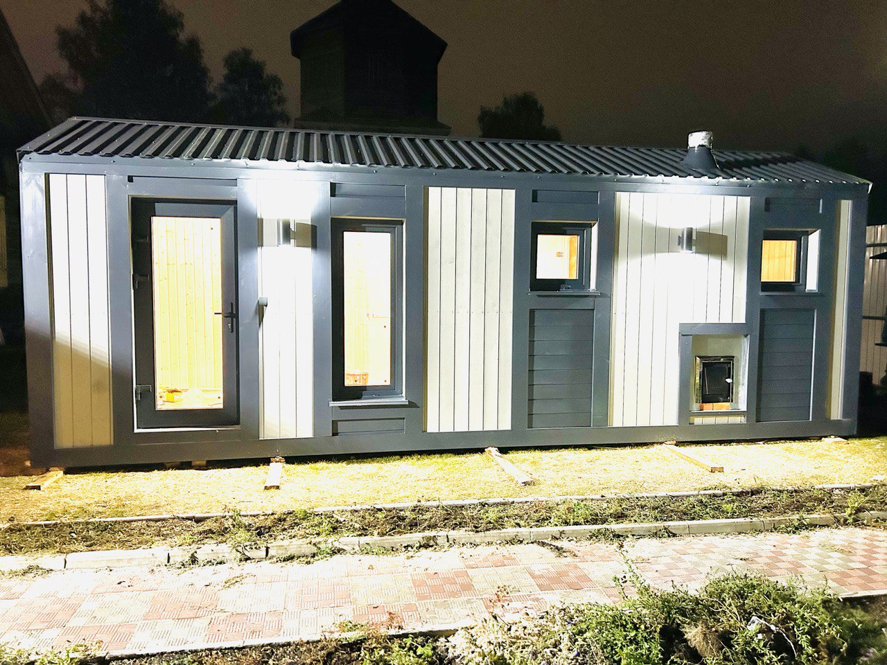 Представляем новую баню в стиле барнхаус с эффектной высокой крышей и современным дизайном. Проект площадью 7×2,3 м построен для заказчика в Раменском и сразу привлекает внимание своим брутальным и одновременно стильным видом.