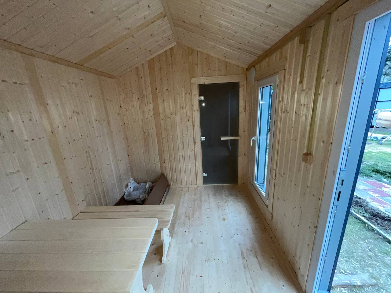 просторная парная с удобными полками