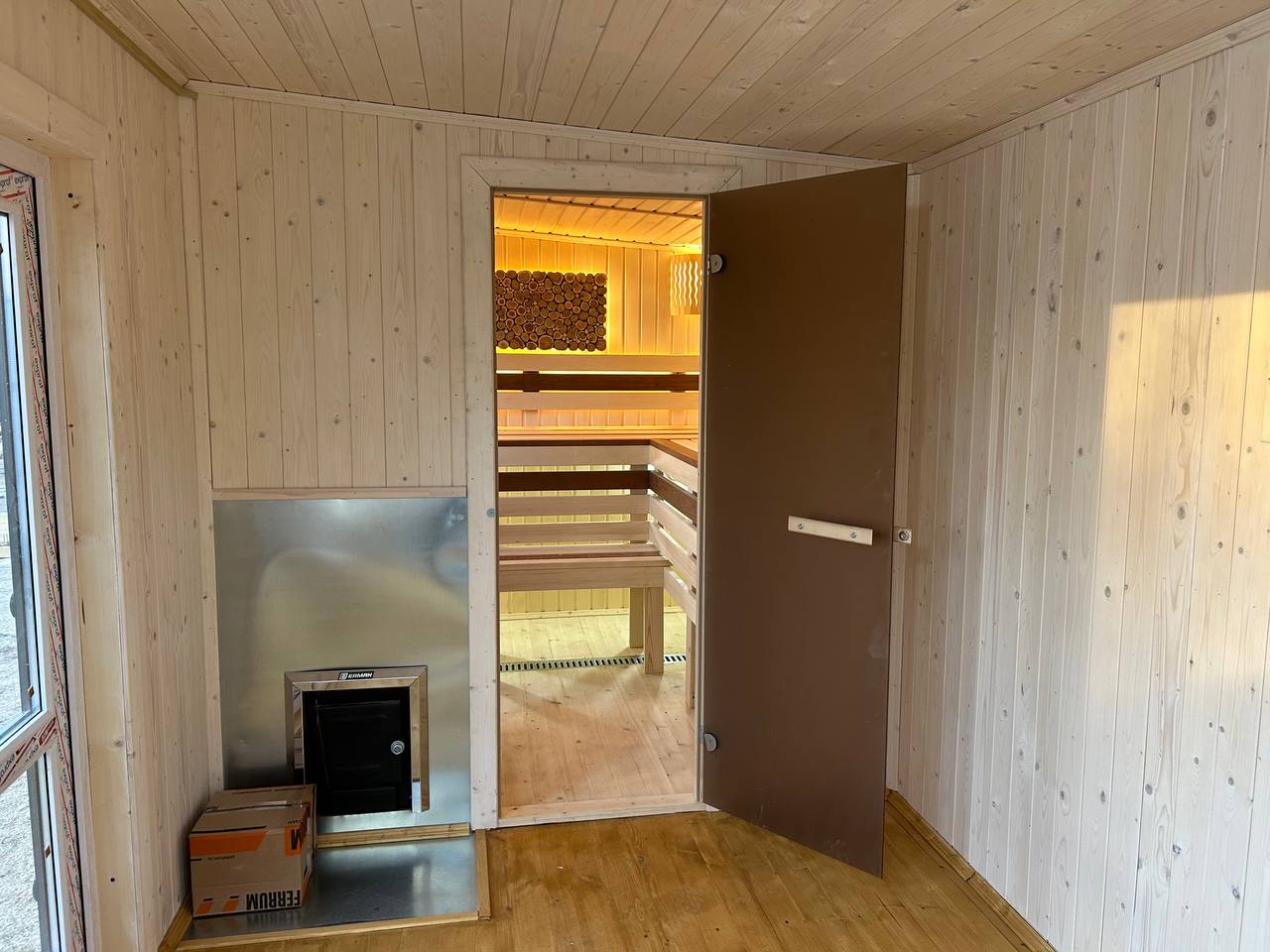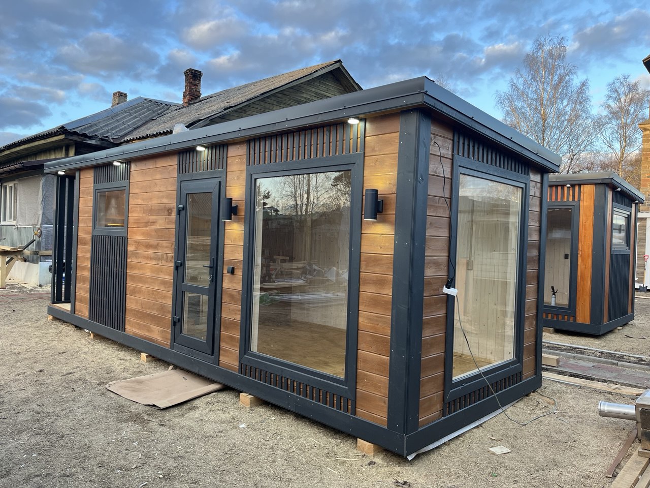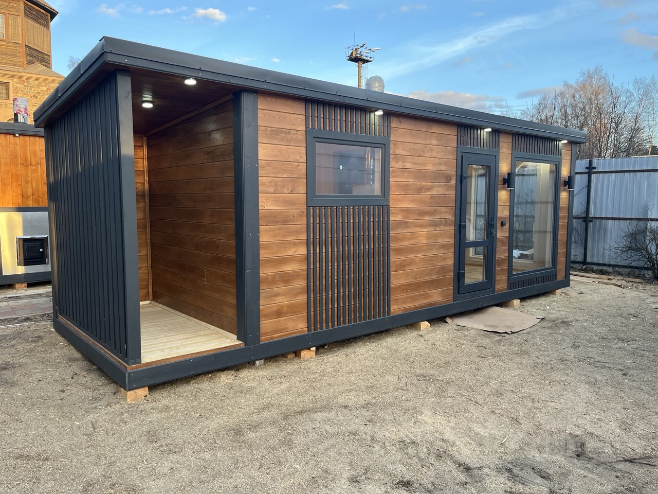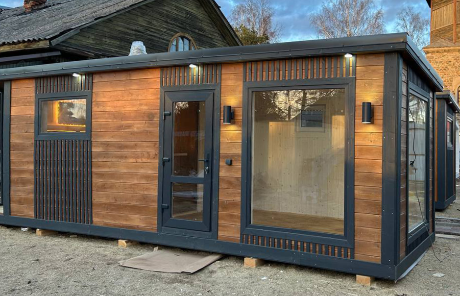 Баня выполнена в лаконичном скандинавском дизайне, который идеально впишется в любой участок.
